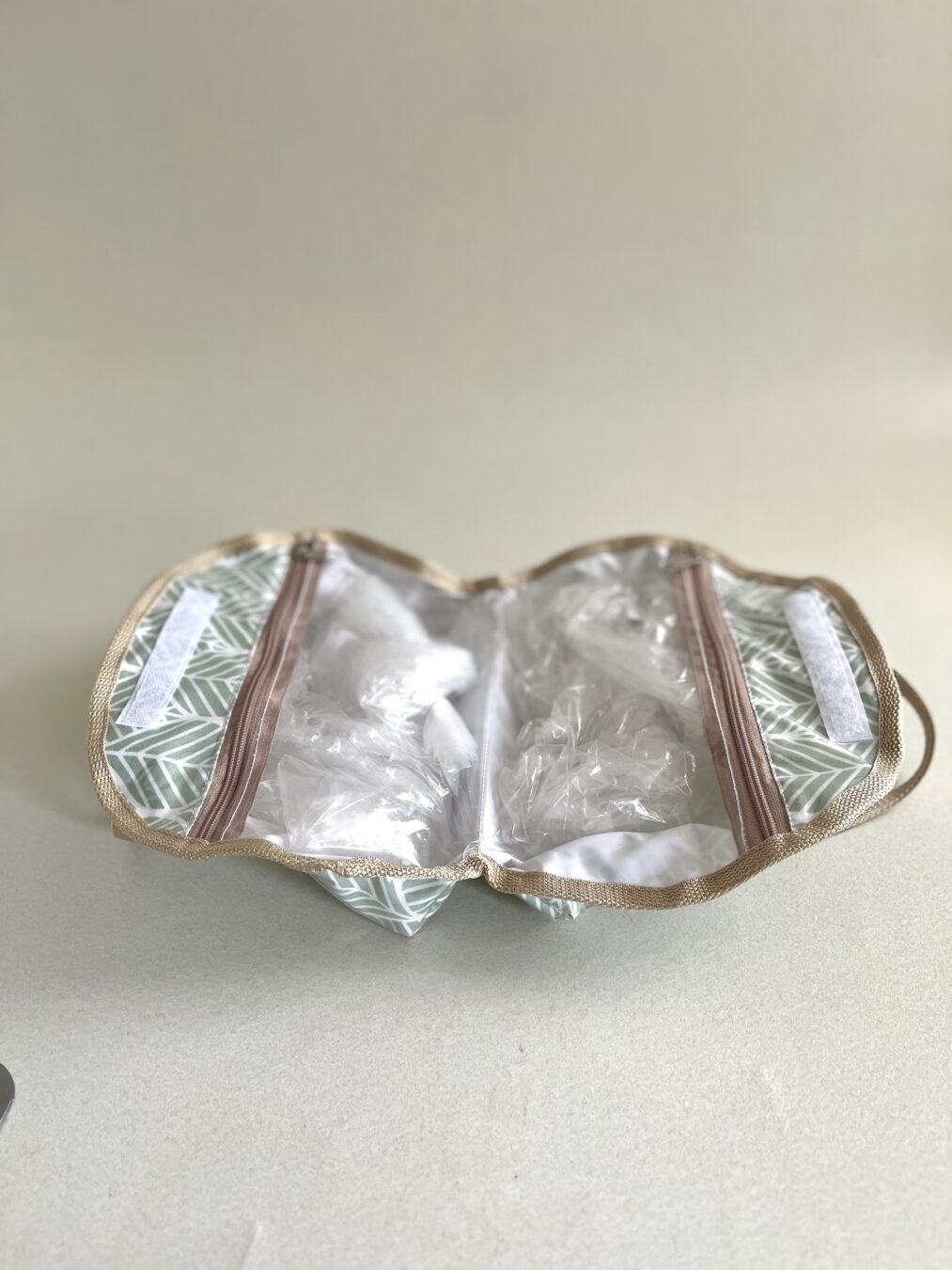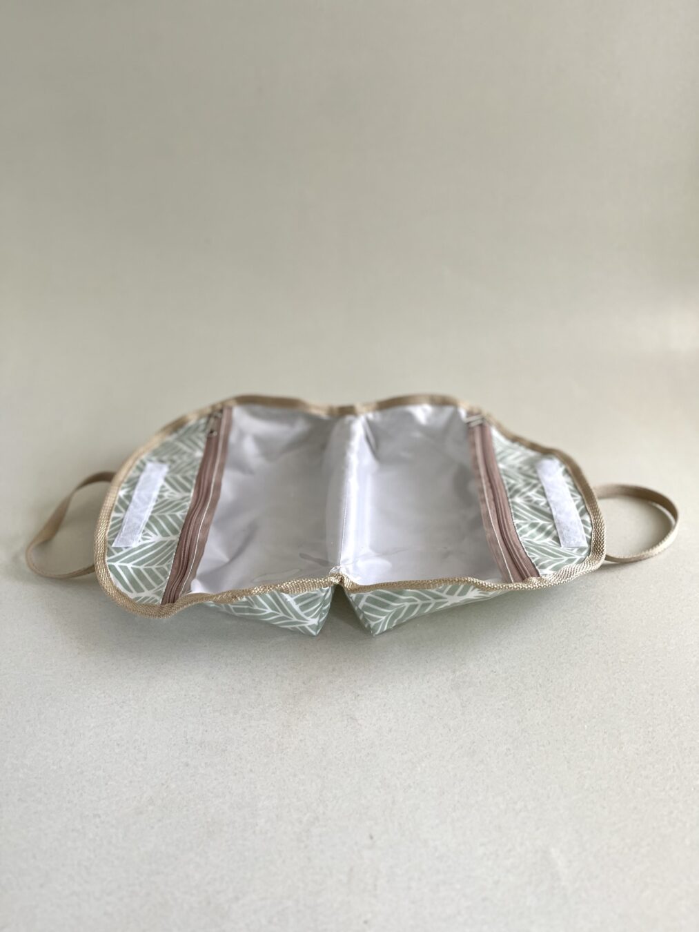 Forrado con nylon por fuera y tela impermeable por dentro.