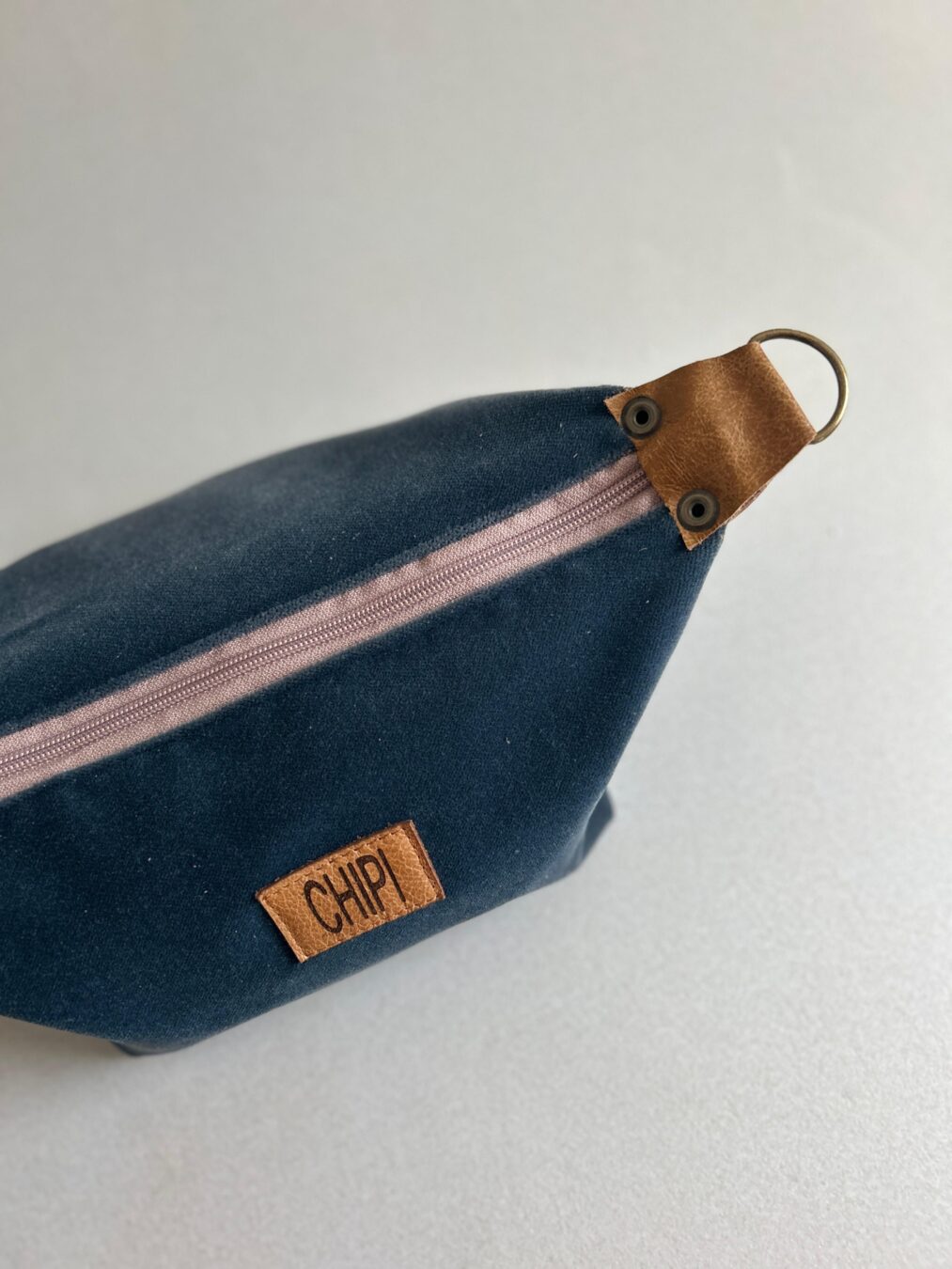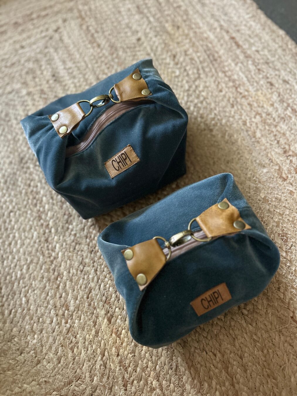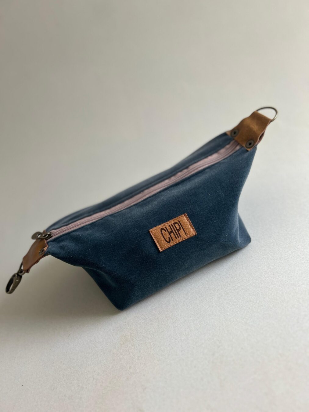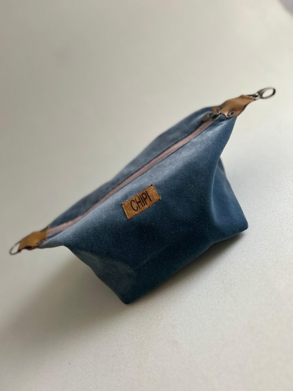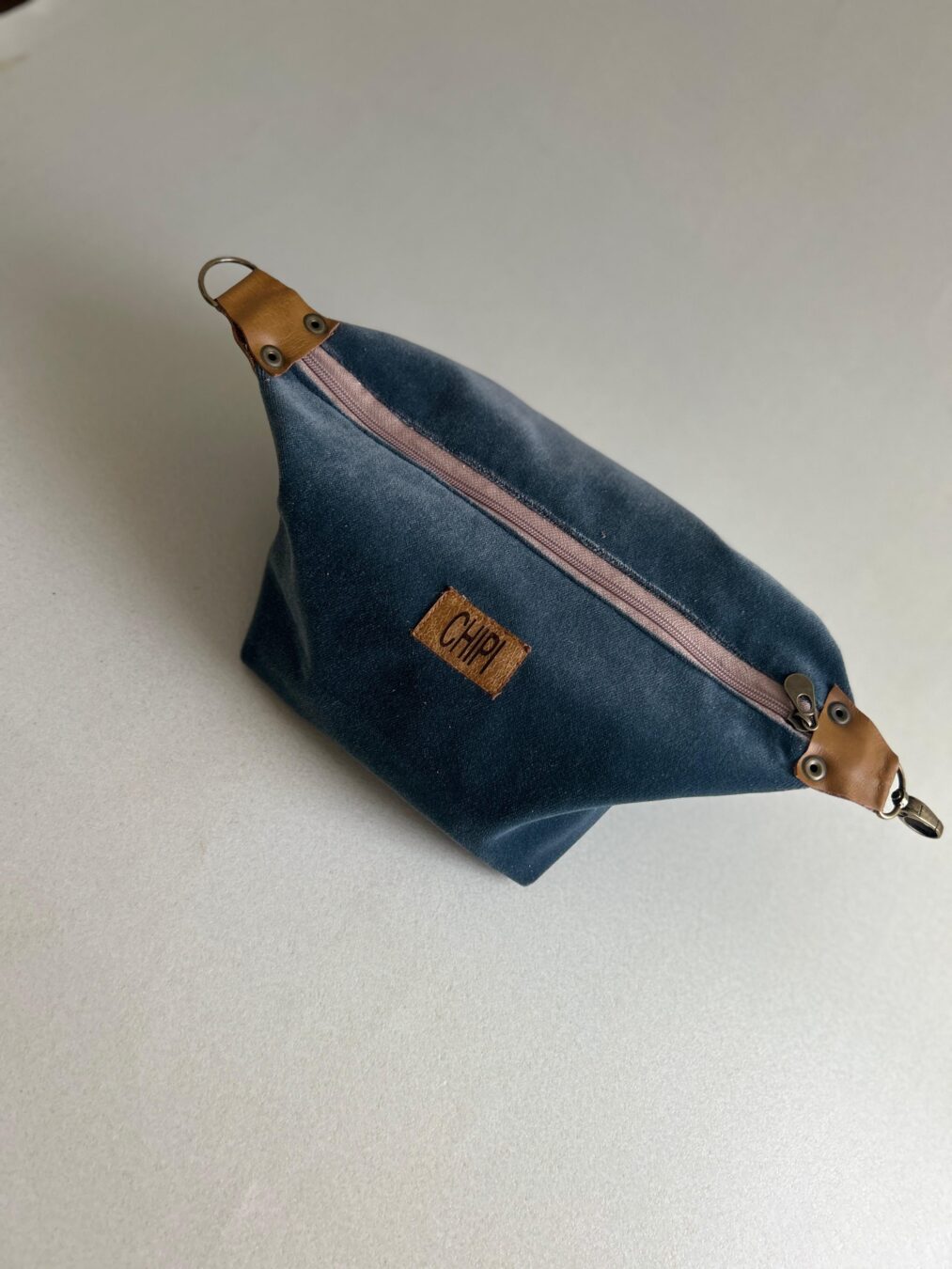 Bolsito de lona por fuera y tela impermeable por dentro.
