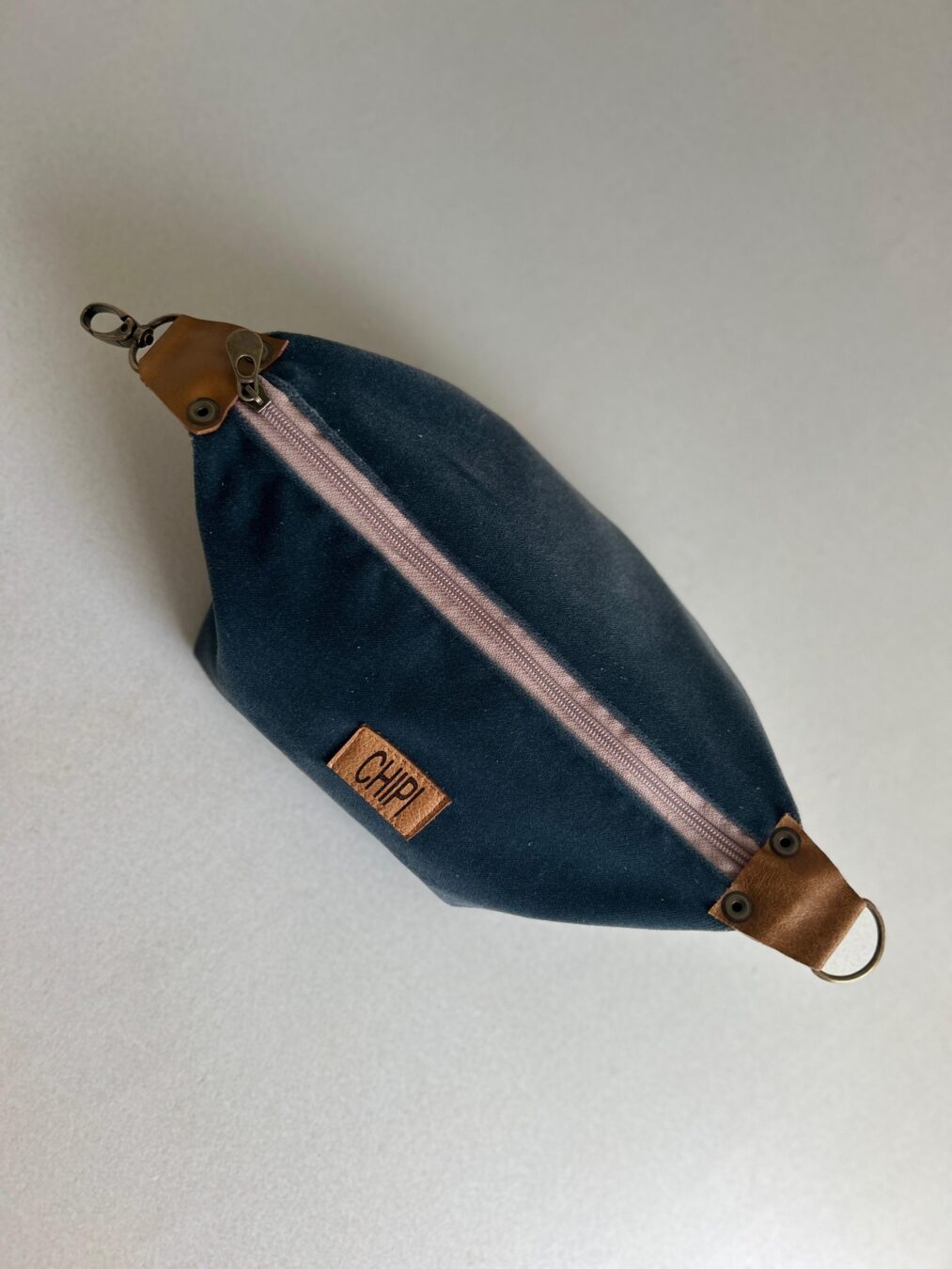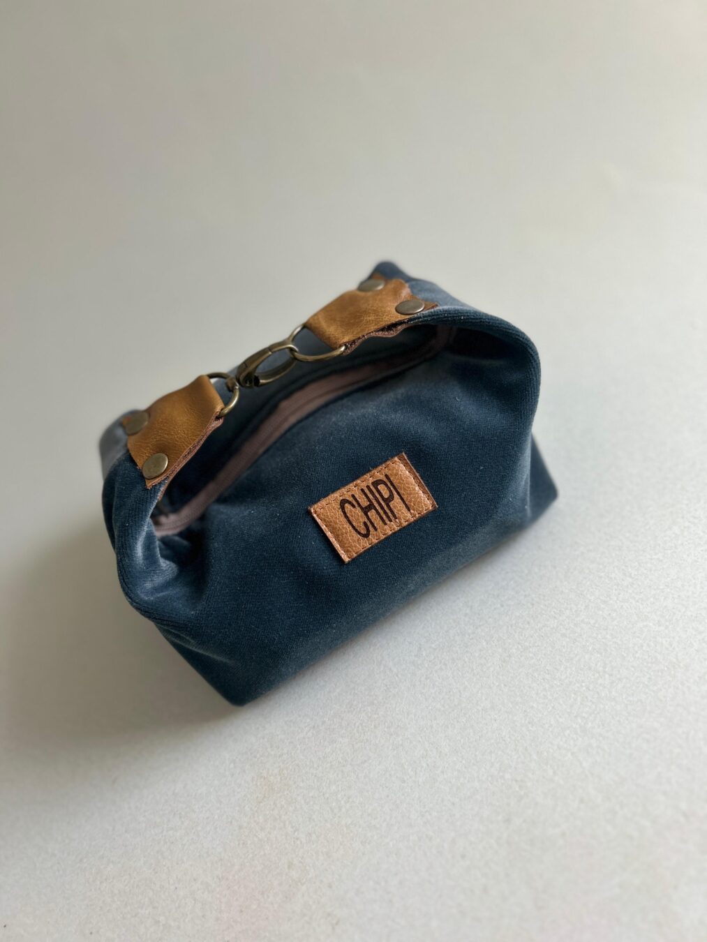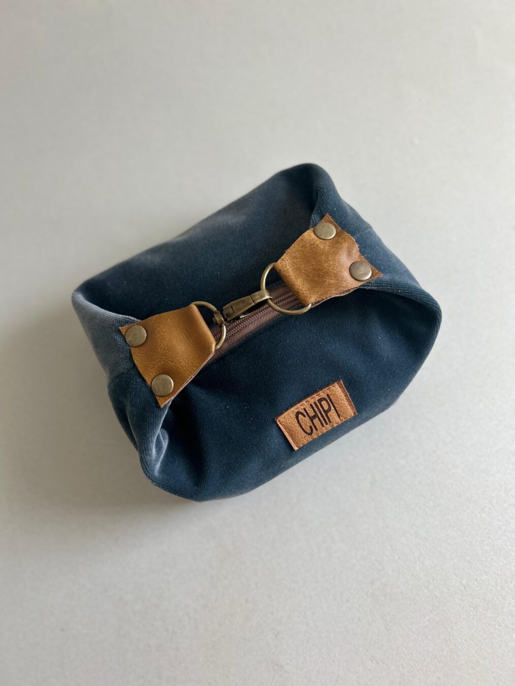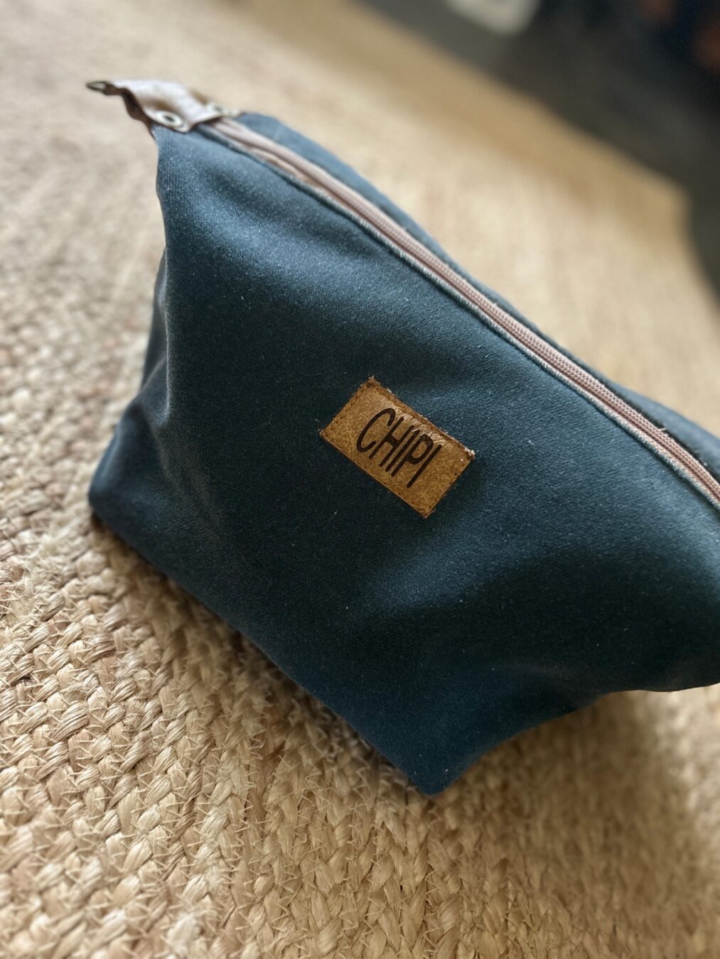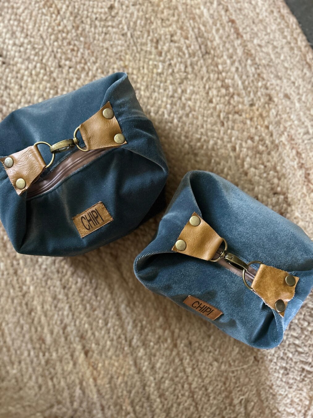 Bolsito de lona por fuera y tela impermeable por dentro.