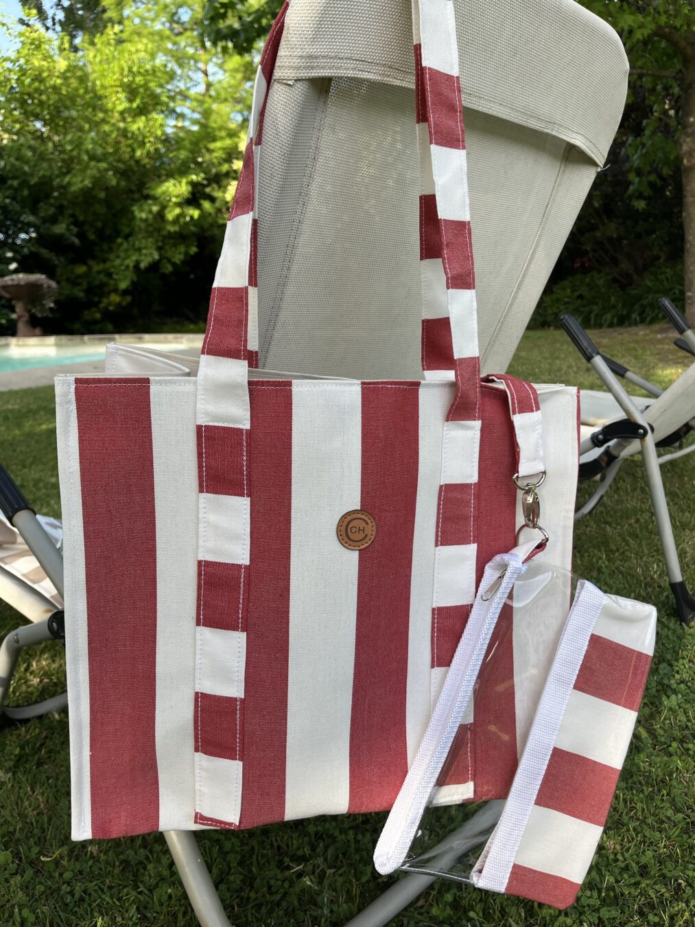 Bolso de playa con lona impermeable por dentro y lino por fuera ☀️