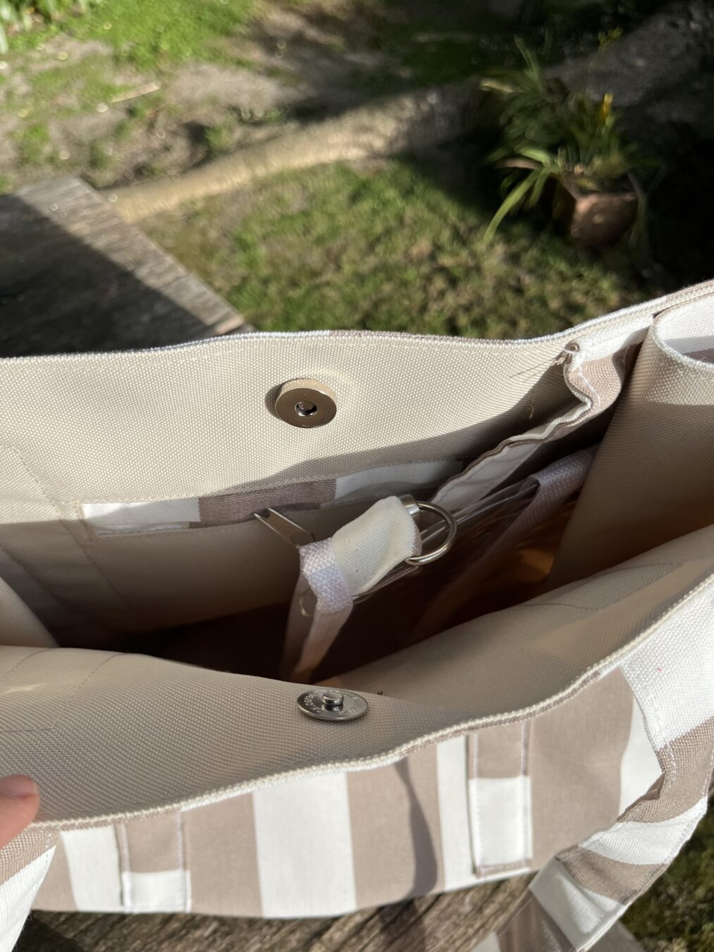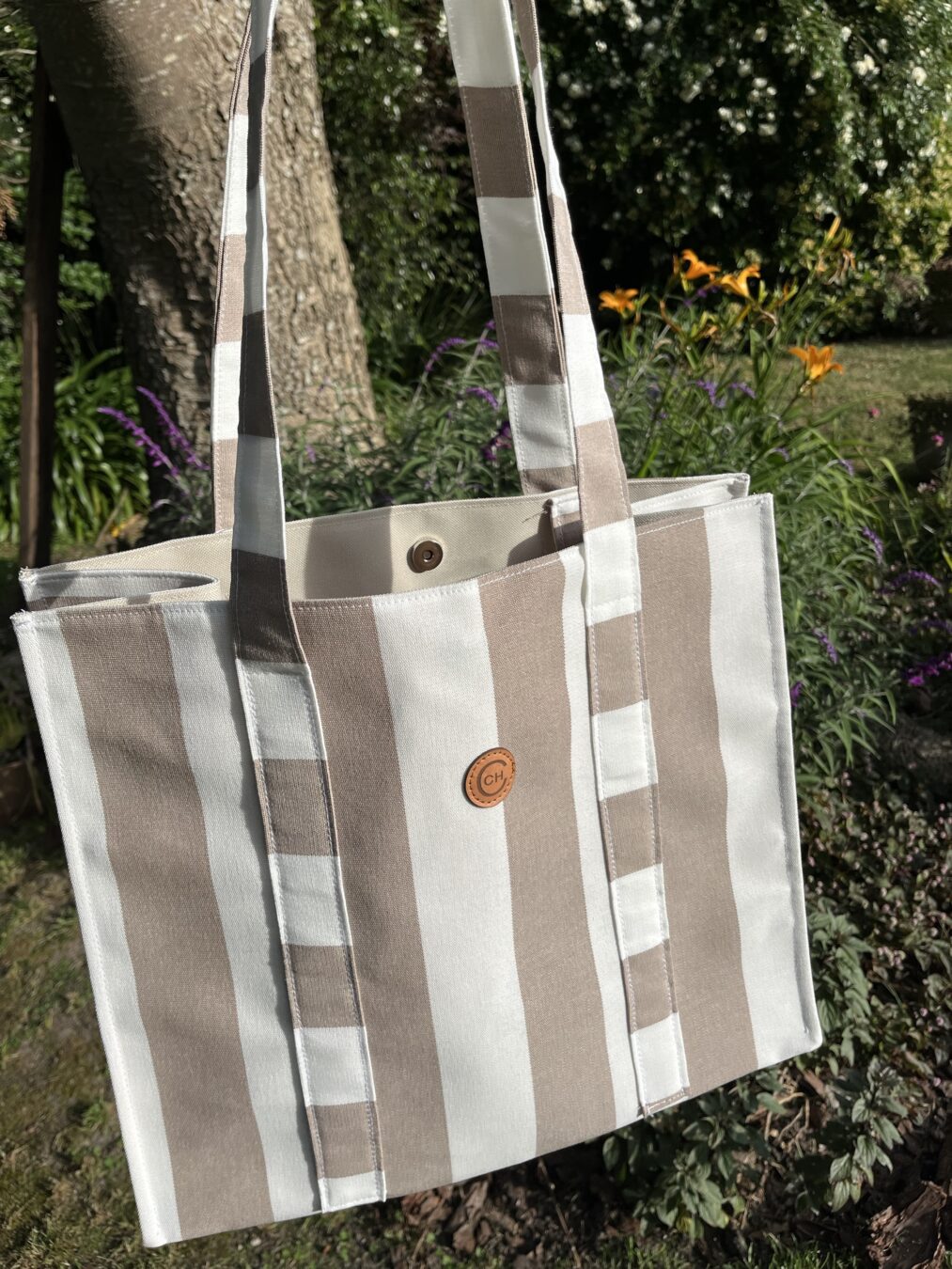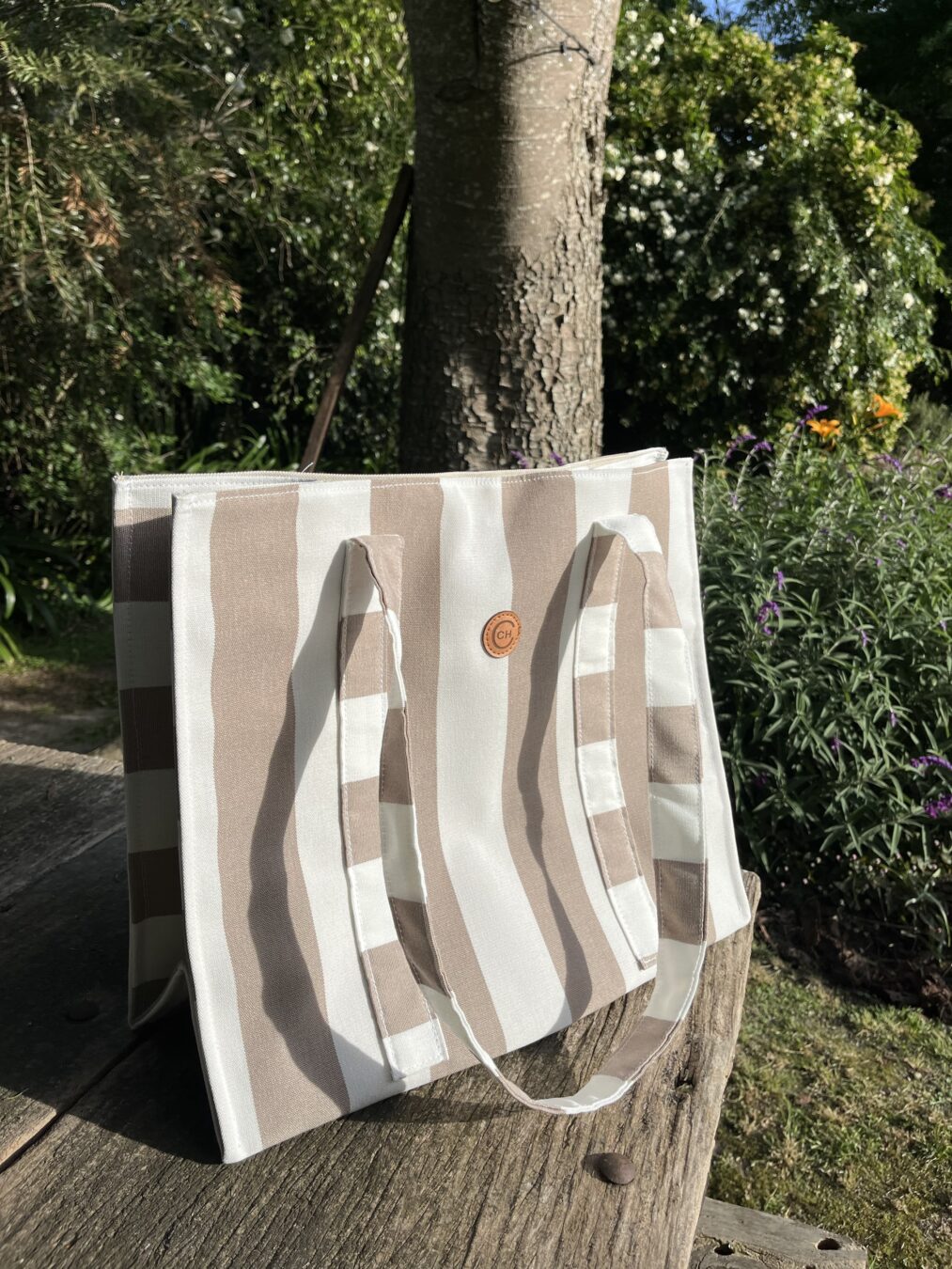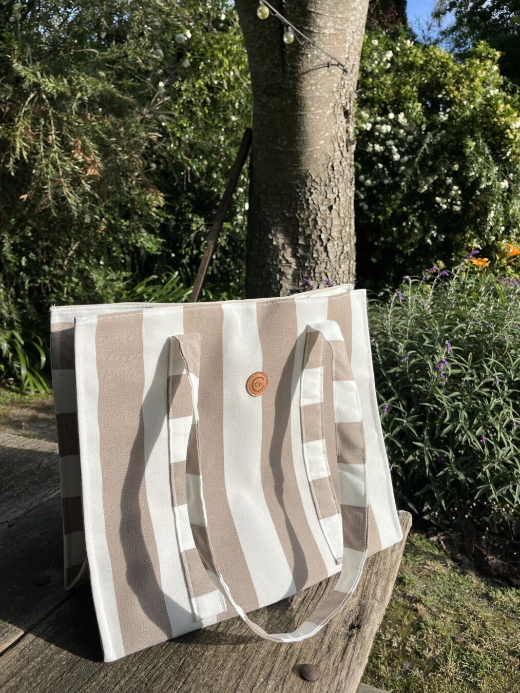 Bolso de playa con lona impermeable por dentro y lino por fuera ☀️