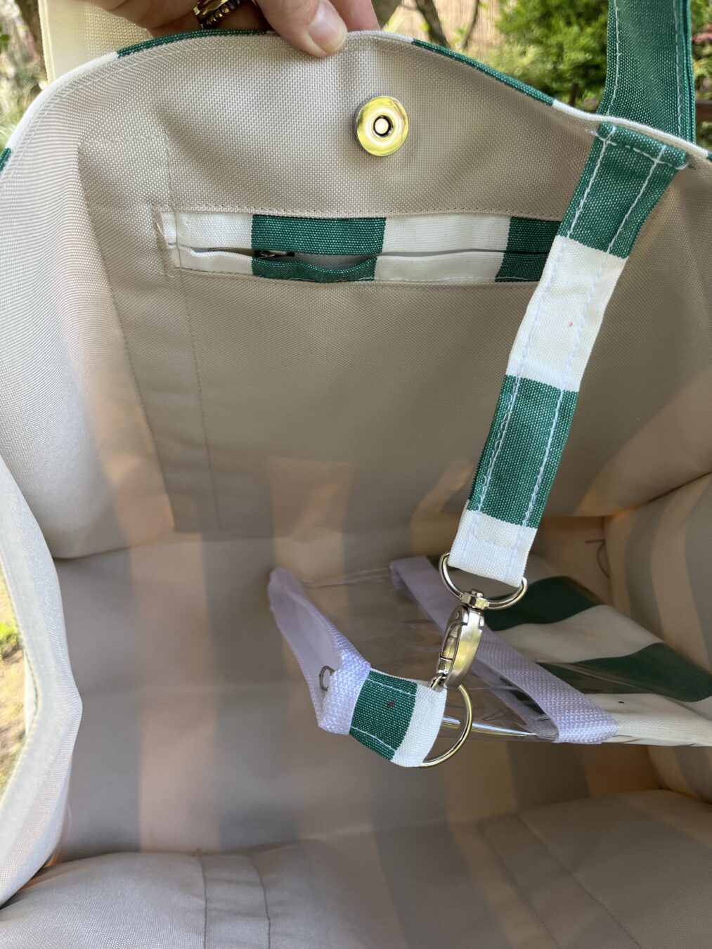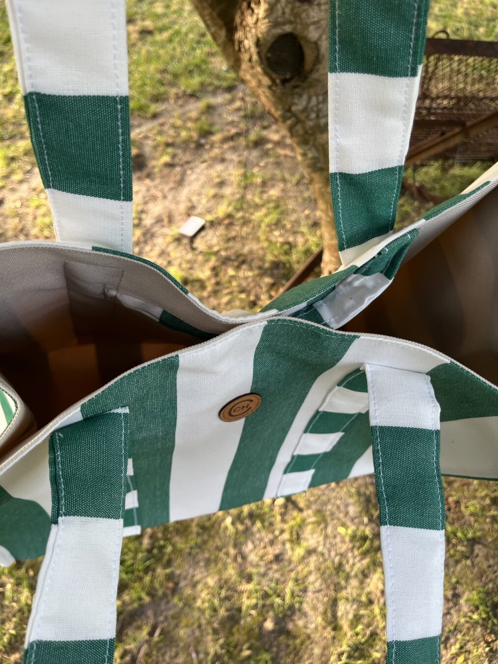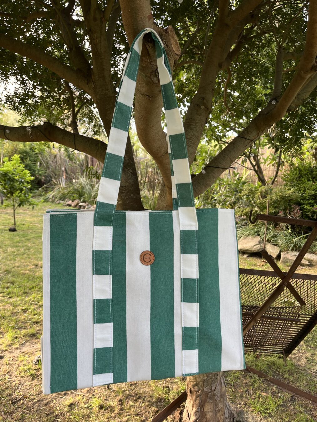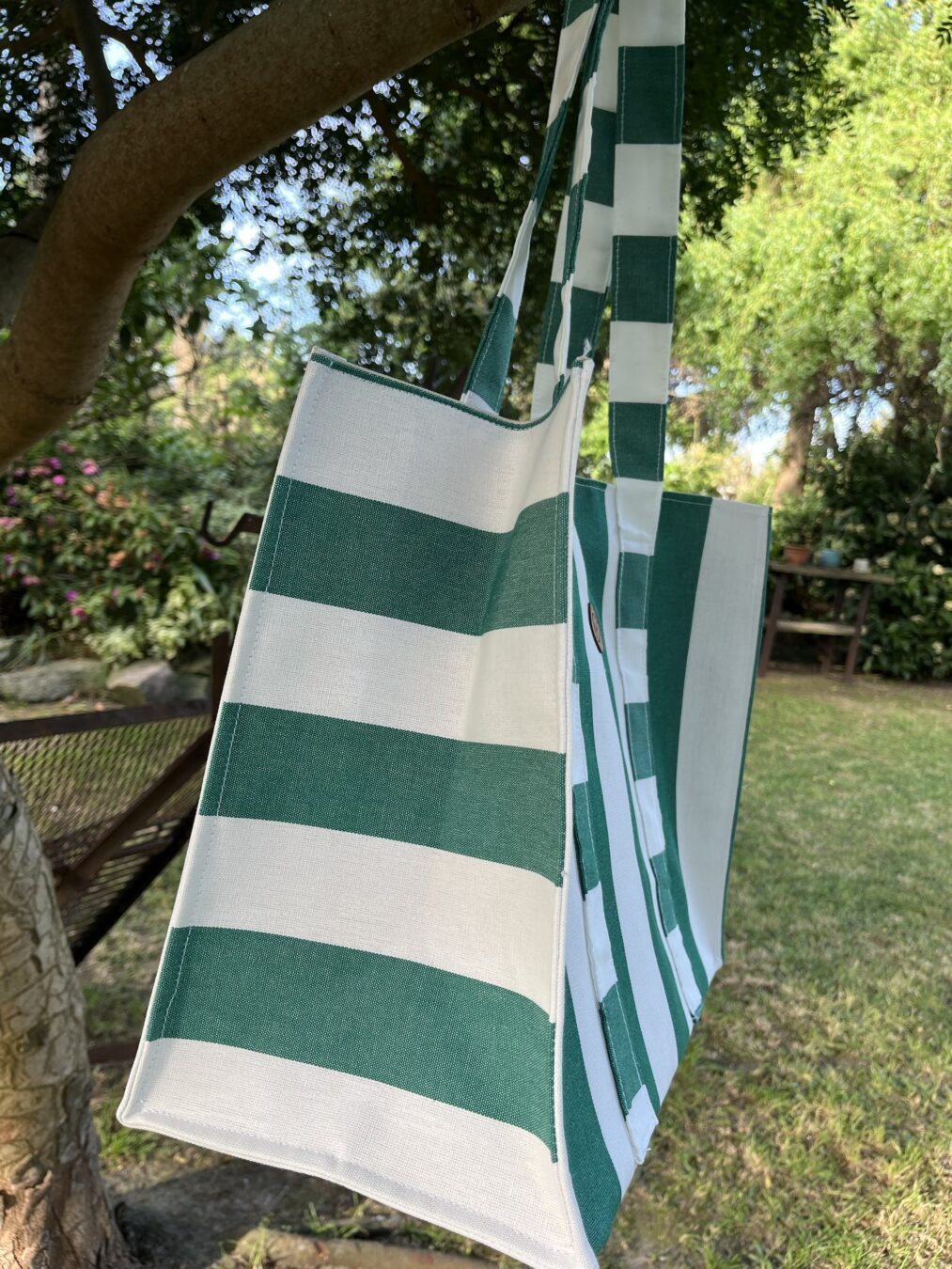 Bolso de playa con lona impermeable por dentro y lona rayada impermeable por fuera ☀️