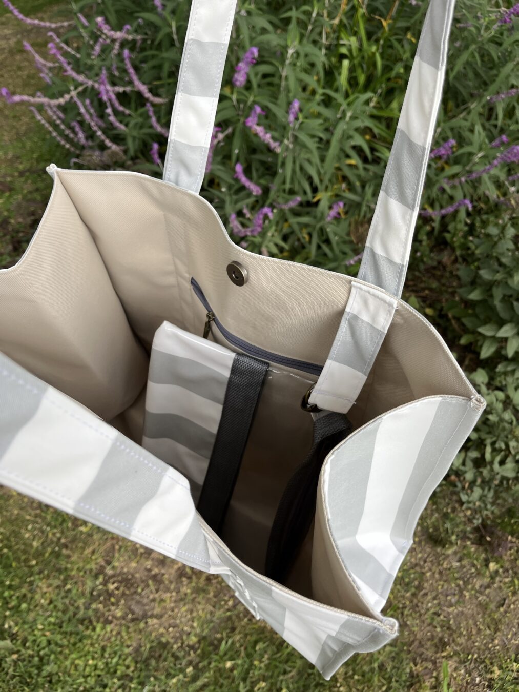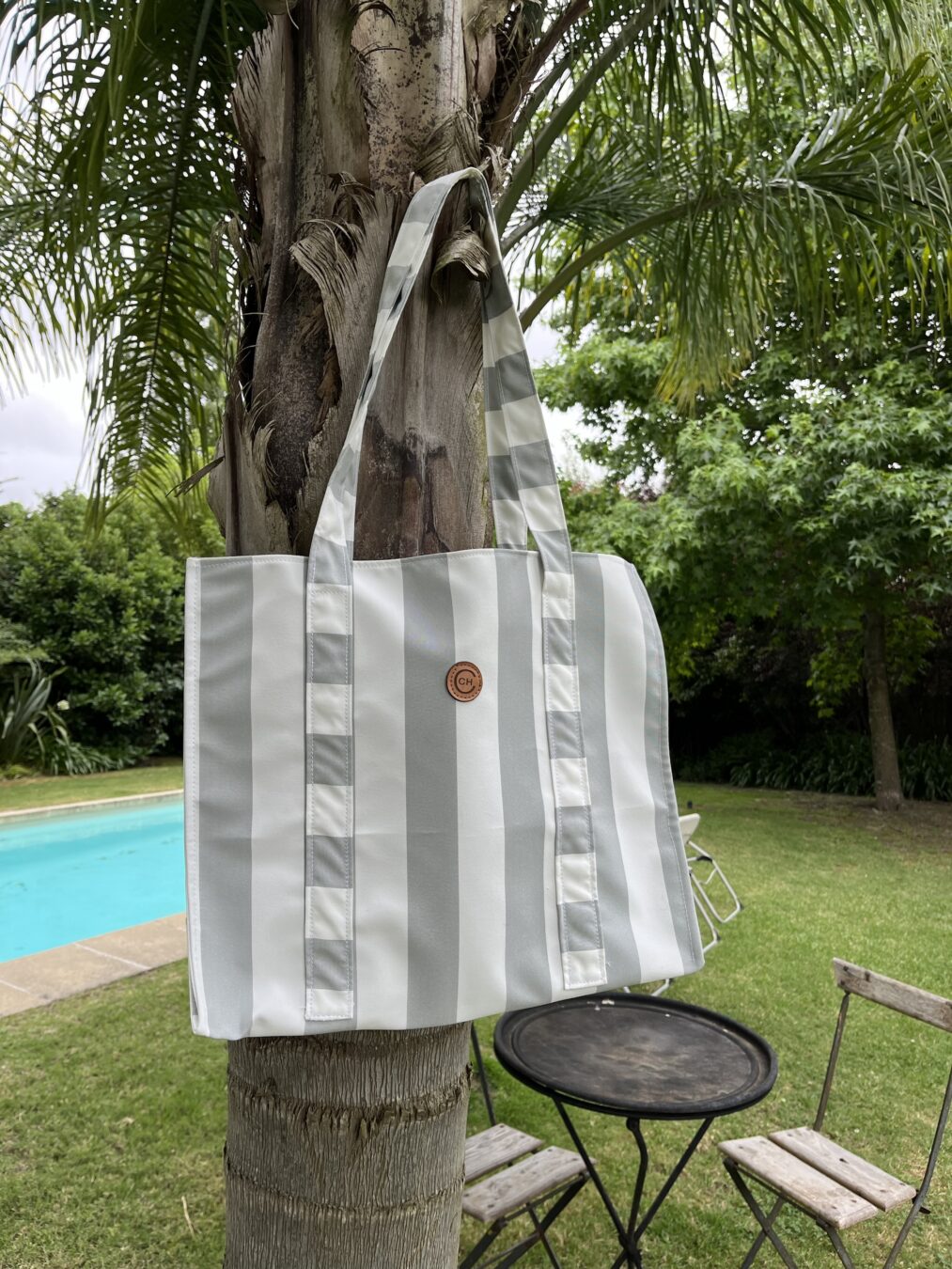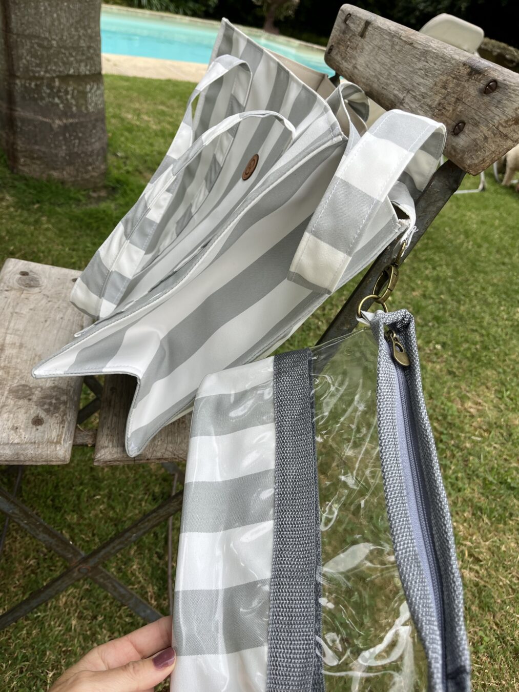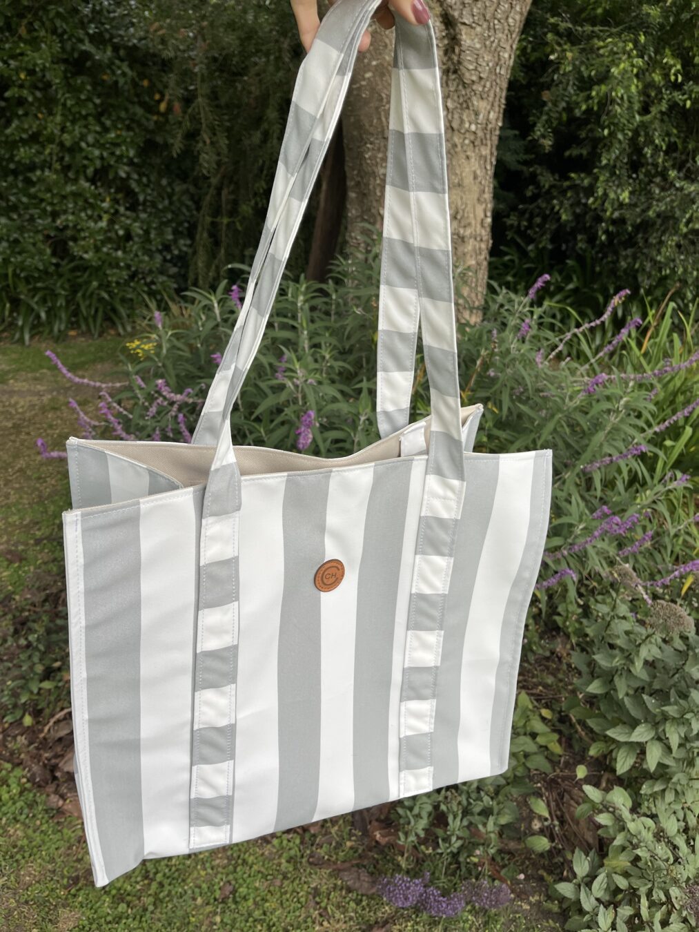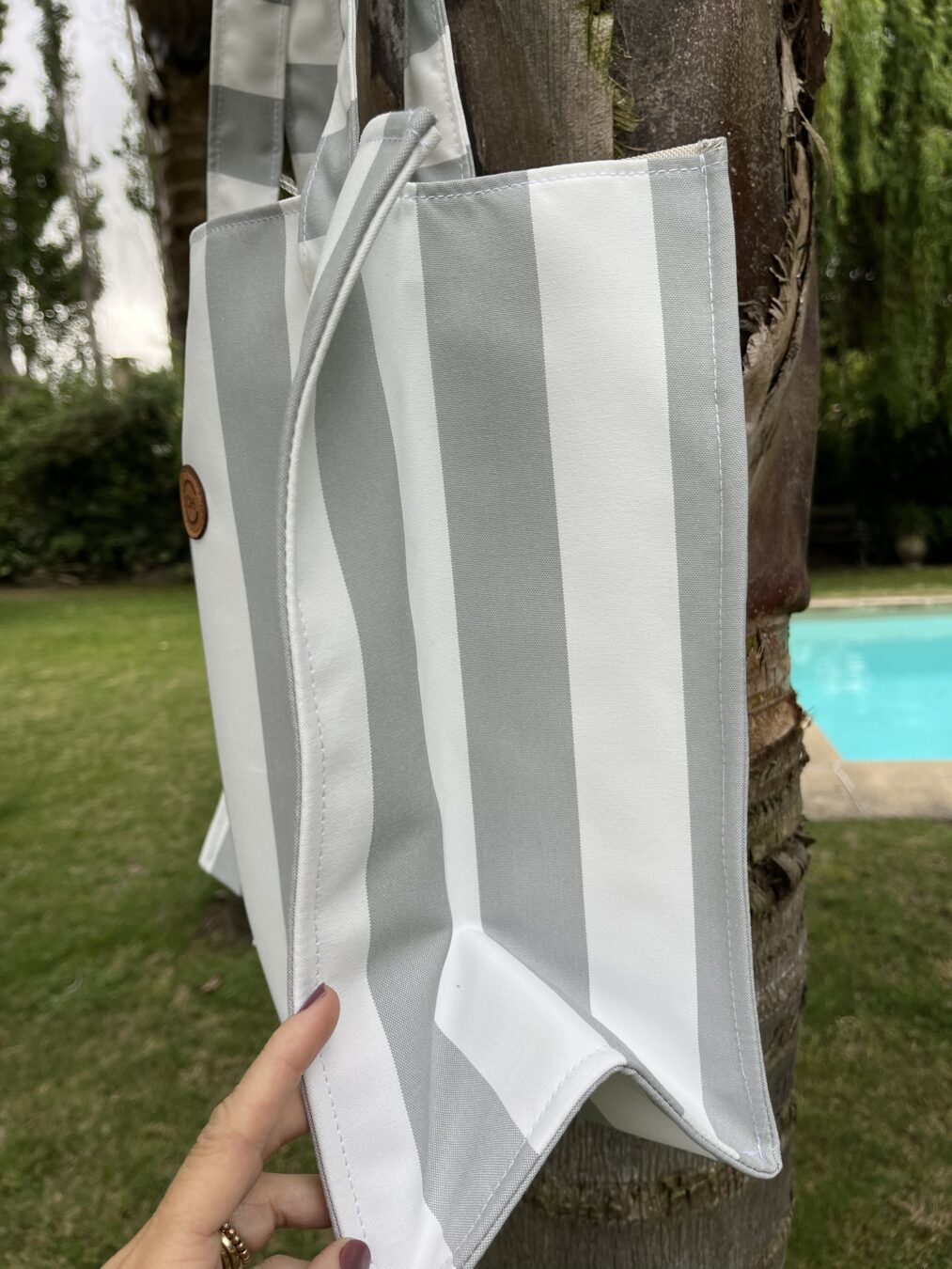Bolso de playa con lona impermeable por dentro y lona rayada impermeable por fuera ☀️