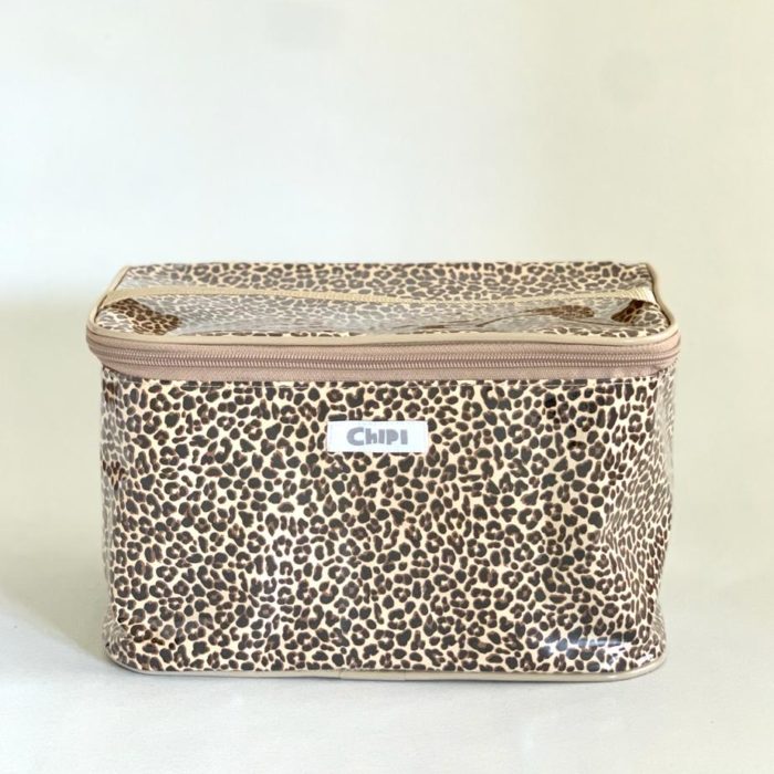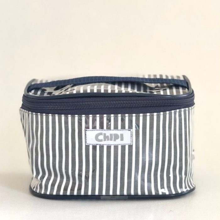 Bolsito de tela forrado por fuera con nylon transparente y por dentro con nylon blanco.