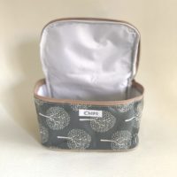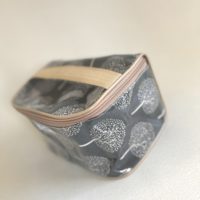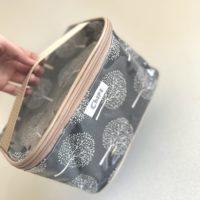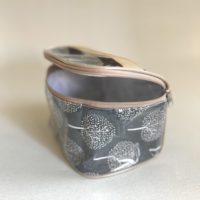 Bolsito de tela forrado por fuera con nylon transparente y por dentro con nylon blanco.