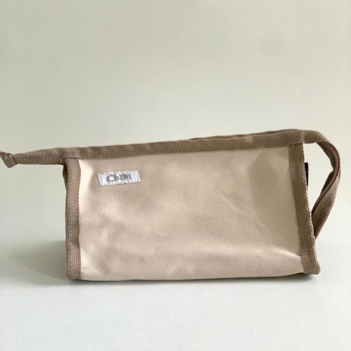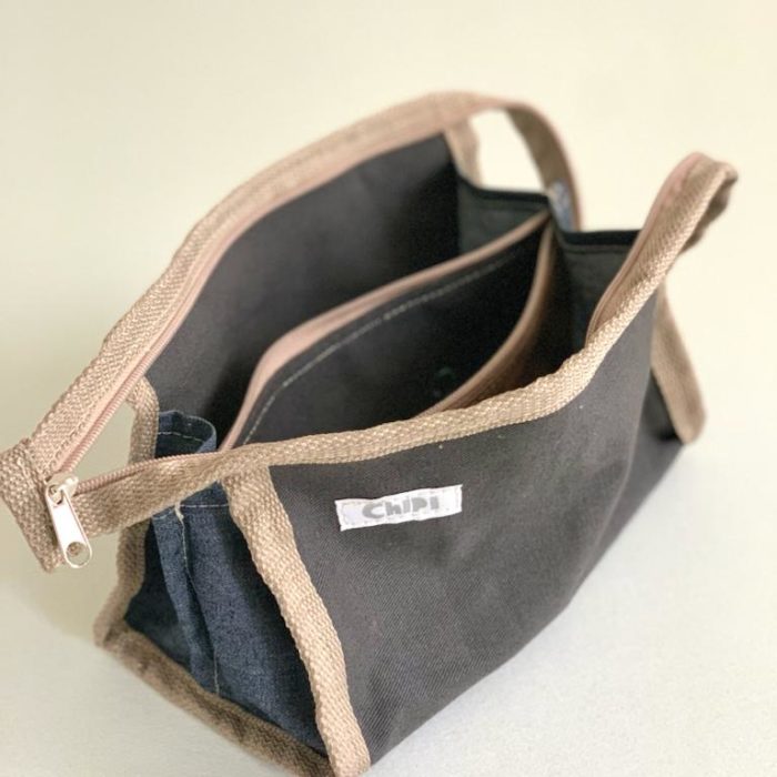Cartuchera de tela con 3 bolsillos diferentes.