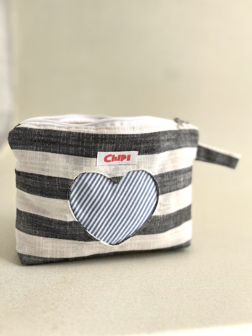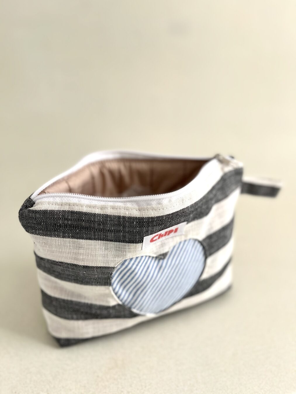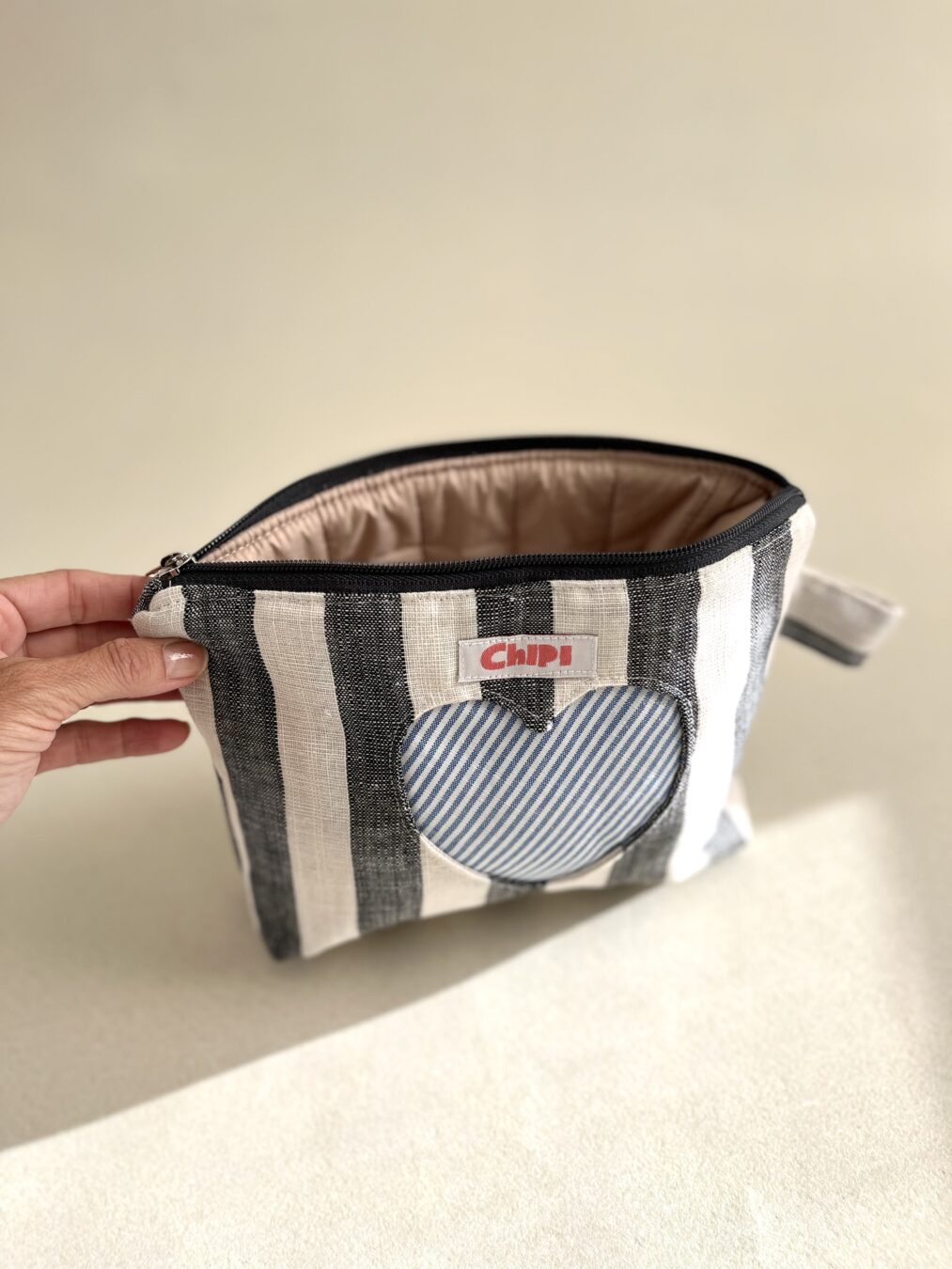 Cartuchera de tela resistente por fuera y tela impermeable capitoneada por dentro, entre ambas telas lleva guata que le da el volumen.