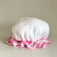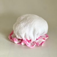 Las gorras de toalla están hechas de material absorbente, tela de toalla, que es 100% algodón.