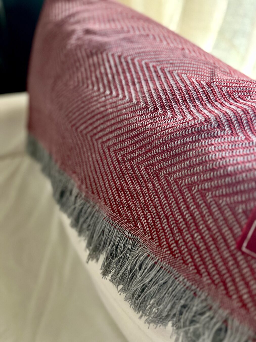 Manta fina en tejido plano. 100% algodón. Detalle de flecos en bordes. Puede funcionar como pie de cama, o como throw de sillón.