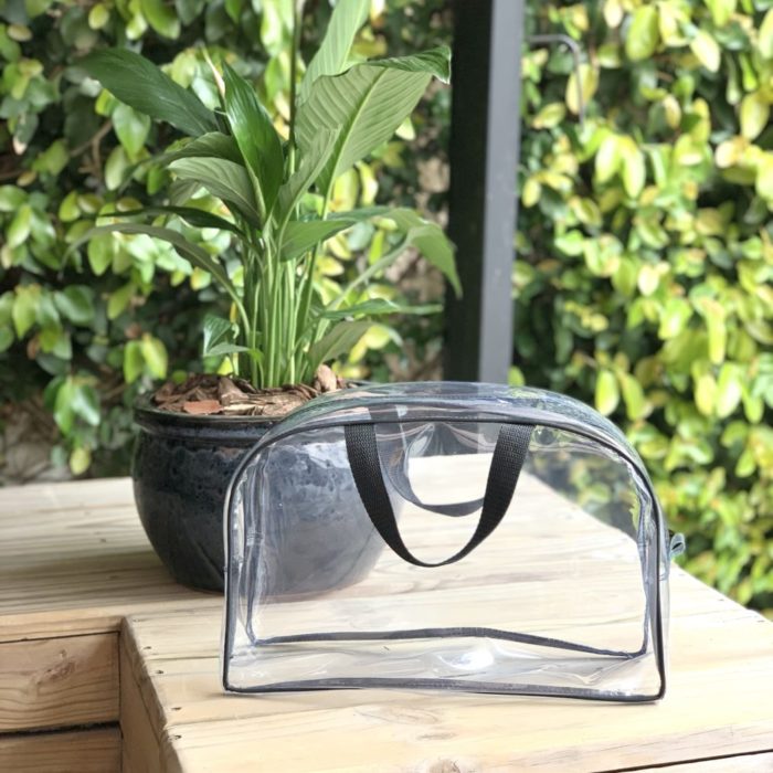 $180Sobre de nylon pvc transparente con cierre.